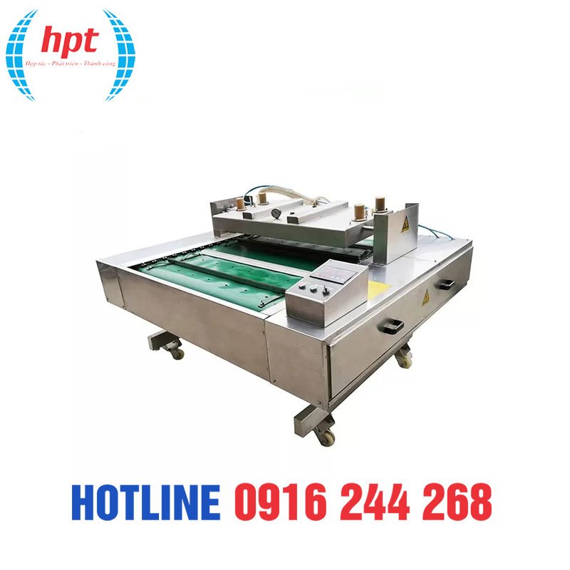 Máy hút chân không liên tục Zhejiang Ruibao DZ-1000 là thiết bị chuyên dụng dùng để đóng gói hút chân không bao bì thực phẩm, phù hợp với các dây chuyền sản xuất yêu cầu vận hành liên tục, ổn định và năng suất cao. Máy giúp loại bỏ không khí trong bao bì, kéo dài thời gian bảo quản và giữ chất lượng sản phẩm thực phẩm tốt hơn trong quá trình lưu trữ và vận chuyển.